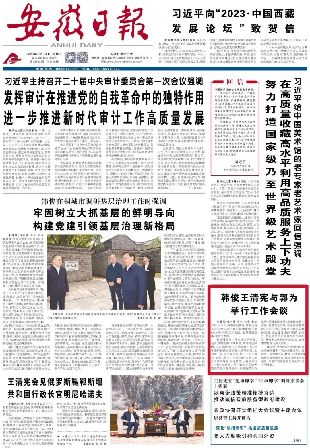 5月23日,安徽省委书记韩俊、省长王清宪在合肥与神州信息董事长郭为举行工作会谈。省领导虞爱华、张红文参加。
